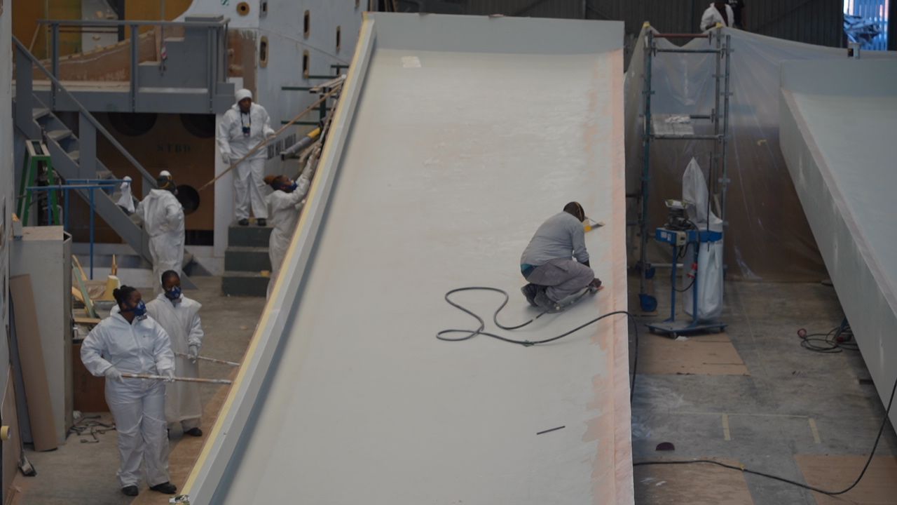 Ten lucky trainee laminators are learning from the pros at the Southern Wind Shipyard in Athlone as part of Southern Wind’s internal skills training programme.